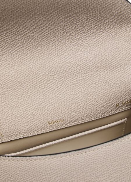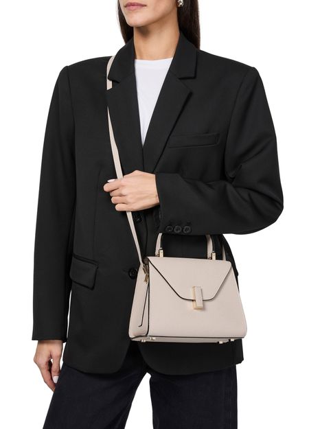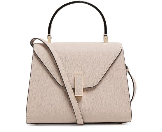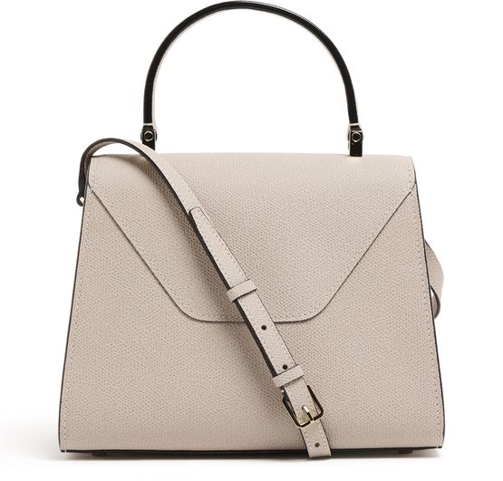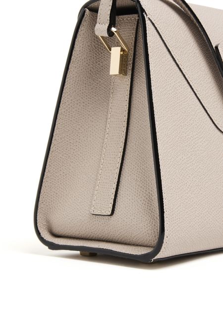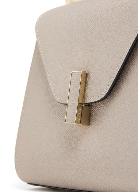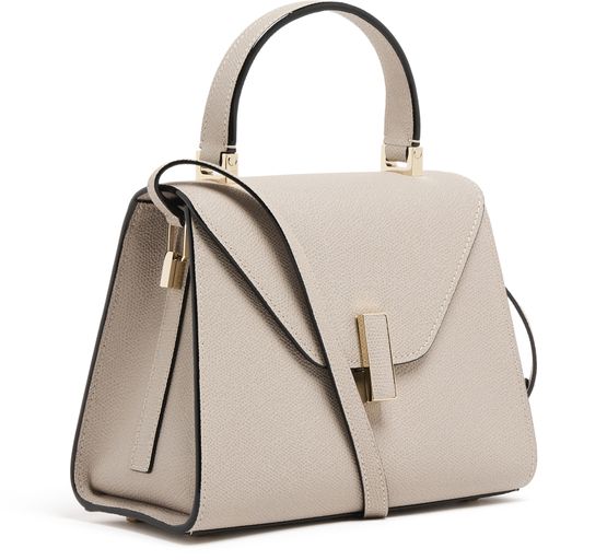 Reveal Valextra's Iside mini bag, crafted from grained leather with a refined gold clasp and visible stitching. The single handle and adjustable thin strap offer versatile styling, while the interior pocket and single compartment ensure practical elegance for your essentials.