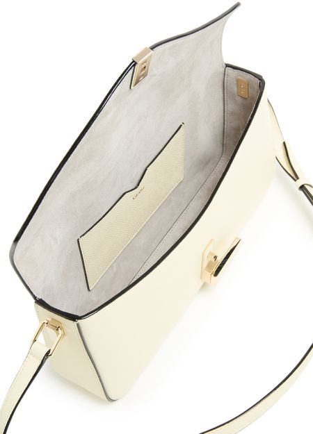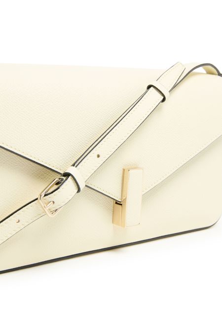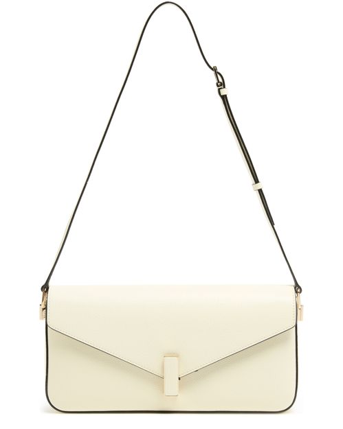 Unveil Valextra's Iside shoulder bag, a masterpiece of elegance featuring a single compartment and twist lock closure. This mini bag, with its gold finish and visible topstitching, offers versatility with an adjustable strap for crossbody or shoulder wear. Interior patch pockets add functional flair.