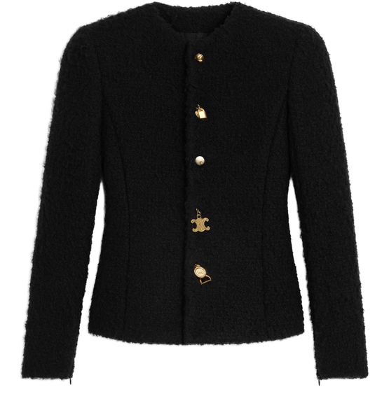 • Description : Tailored with shoulder pads, pure collar, 5 charms buttons, zipped cuffs.