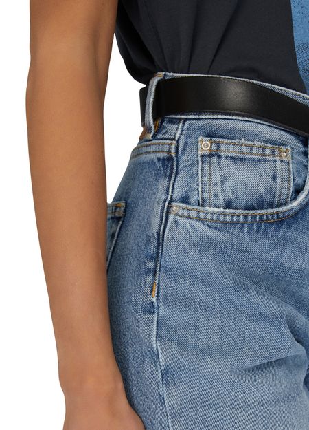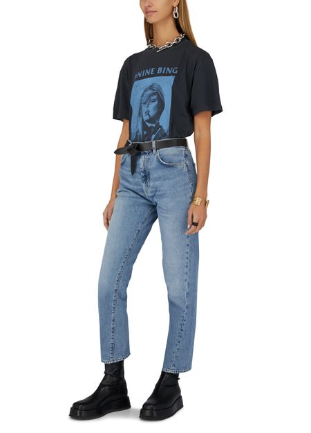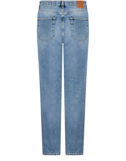 Jean is a stylish pair of straight-cut jeans featuring a front button closure and a classic five-pocket style. It includes belt loops for added convenience and a logo-embellished back label for a touch of sophistication. With a concealed zipper, these jeans offer a sleek and seamless look.