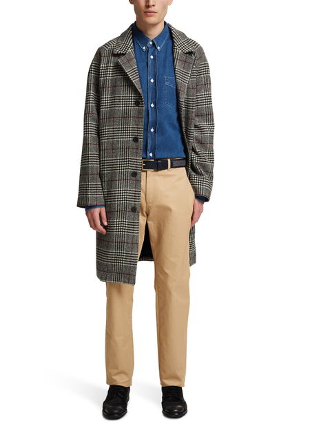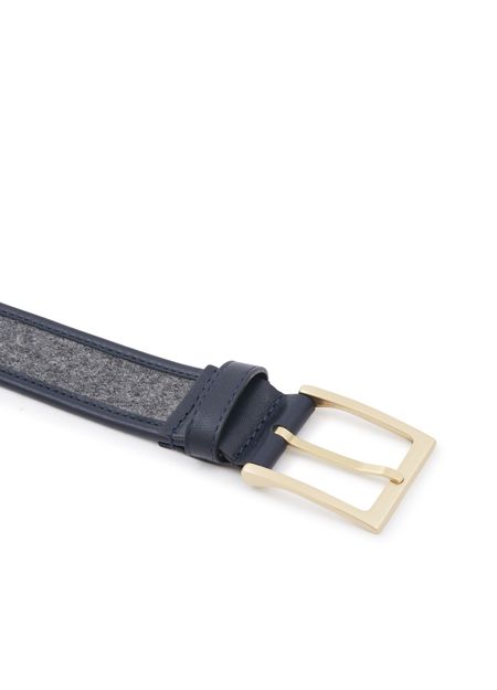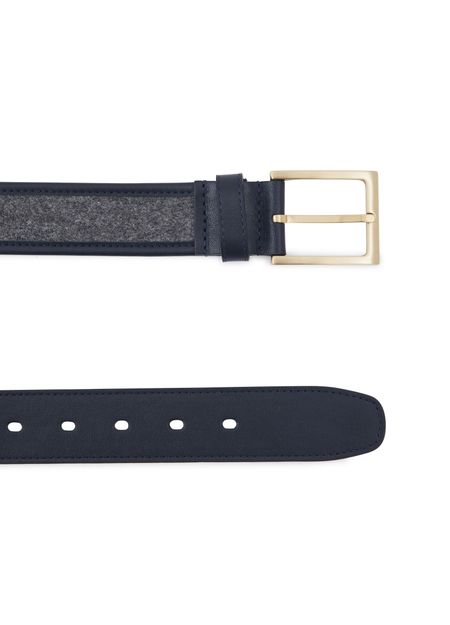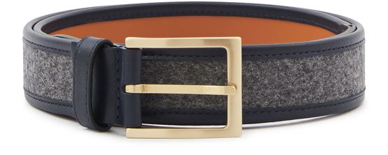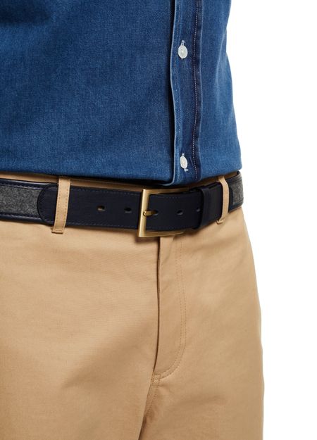 This leather belt reveals the talent of Maison Boinet. This iconic designer combines traditional design with modern details. This accessory has an elegant rounded tip and features two textures. The finesse of specialist leather accessory maker Maison Boinet can be seen in the narrow and elegant buckle. Wear with wool trousers.