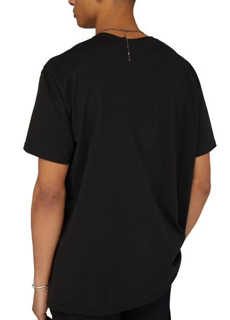 Alexander McQueen's loose fit T-shirt is the epitome of casual luxury. With a round neck and short sleeves, it offers a comfortable and relaxed look. The chest logo and logo on the side add a touch of brand recognition. Perfect for everyday wear, it blends style and comfort effortlessly.