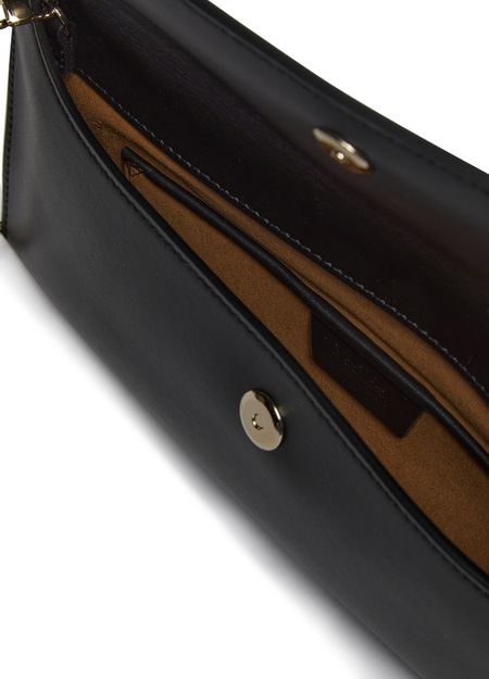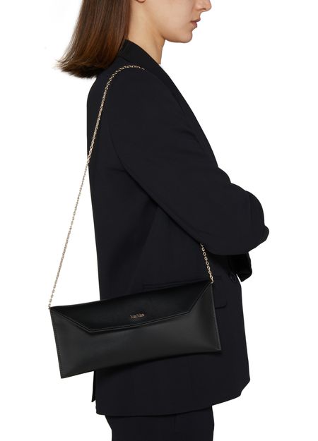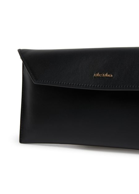 Max Mara's Long envelope chain clutch features a metallic logo on the front, with the brand's logo in gold letters appliquéd on the flap closure. The visible topstitching adds a touch of sophistication to the design. The snap-button fastening ensures your belongings are secure while on the go.