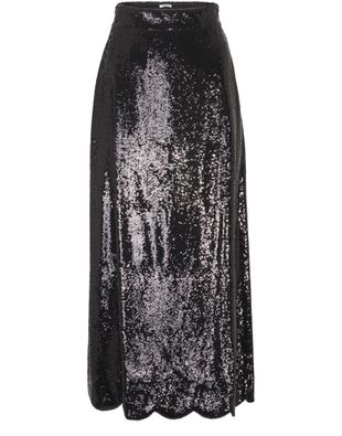 This long skirt with a sophisticated belted design stands out with its brilliant, elegant style. It is a shimmering creation which displays Miu Miu's creative spirit.