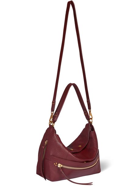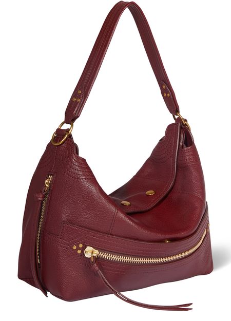• Description : Hobo bag, shoulder bag, single handle, leather handle, carry handle, thin strap, detachable strap, grained leather, zipper closure, snap-button fastening.