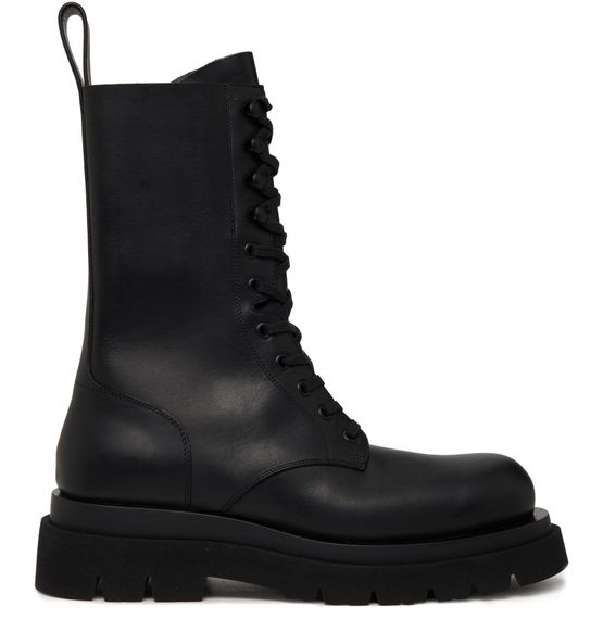 Bottega Veneta's Lug boots are a stylish choice for the modern individual. These lace-up shoes feature a notched sole and a comfortable flat heel, perfect for everyday wear. The contrast details add a subtle pop of personality, while the loop at the back allows for easy slipping on and off.