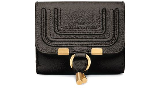 The Marcie wallet is defined by its elegant distinction. This piece by Chloé in grained leather is enhanced by gold-tone finishes and the logo.