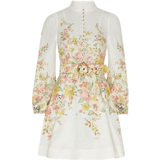 Achieve a sophisticated, feminine look with this Zimmermann mini dress. The all-over floral print adds a touch of romance to the long-sleeved, high-neck design. Pleated details bring dimension to the silhouette, while the back zipper closure ensures a secure fit. Finished with the iconic logo at the back label for a luxe touch.
