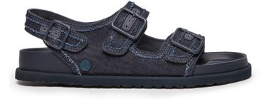 Step into comfort with Birkenstock Milano denim sandals, designed with a wide buckled strap for a secure fit. The printed logo on the side adds a touch of style, complemented by visible stitching that enhances durability. The open round toe and logo-printed insole ensure a relaxed, casual vibe perfect for any outing.