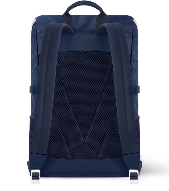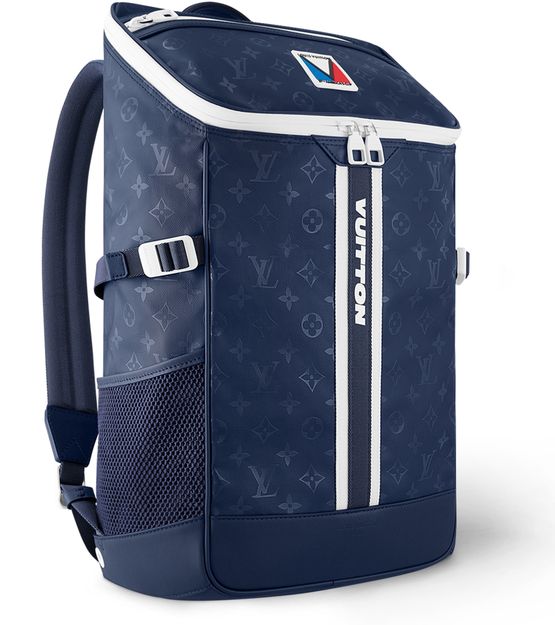 Made from lightweight Monogram Storm canvas, the Mountain Backpack combines comfort with technical innovations like the LV fast-release buckle and ergonomic straps for comfortable carry. It’s signed "Vuitton" on the front and features the America’s Cup collection patch. Two side pockets in mesh and a roomy main compartment, with a flat pocket, make it practical.
