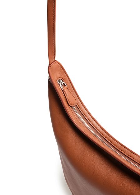 Reveal The Row's N/S Izzy shoulder bag, crafted from smooth leather with a single handle and thin strap for versatile styling. Visible stitching and a tone-on-tone lining highlight refined craftsmanship, while a spacious interior with zippered and open pockets ensures both elegance and practicality.