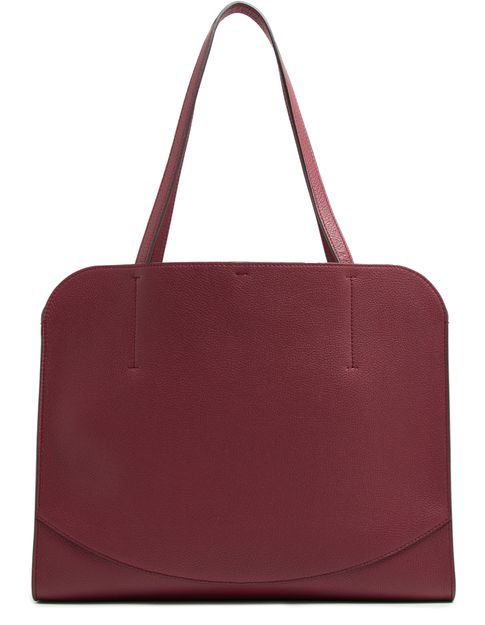 Reveal Fleuron's Oak medium tote bag, featuring a sleek zipper closure and a stylish logo in silver letters. The front logo adds a touch of elegance, while the visible topstitching showcases meticulous craftsmanship, making it the perfect accessory for any modern ensemble.
