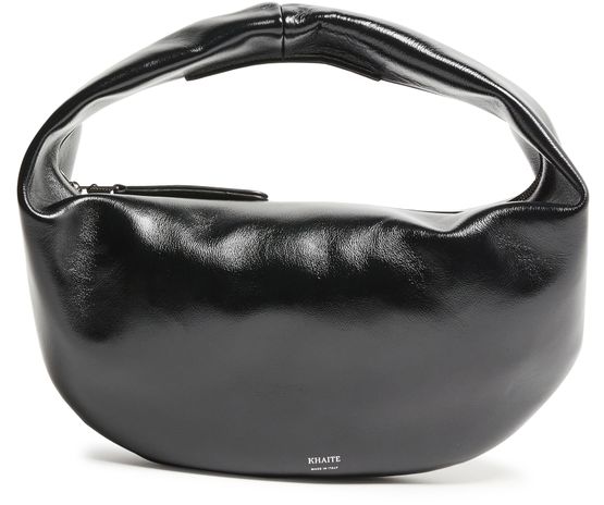 Introducing Khaite's Olivia hobo medium bag, a masterpiece of smooth leather craftsmanship. This shoulder bag features a single handle and a zipper closure, adorned with a front logo in silver letters. Its interior is lined with leather, offering both style and functionality.
