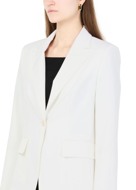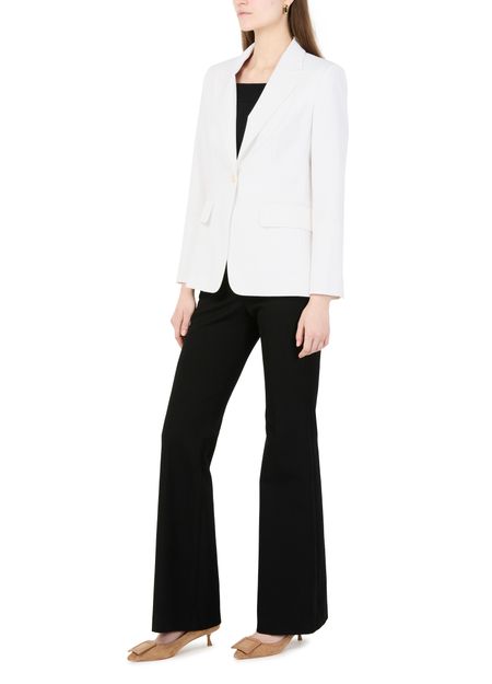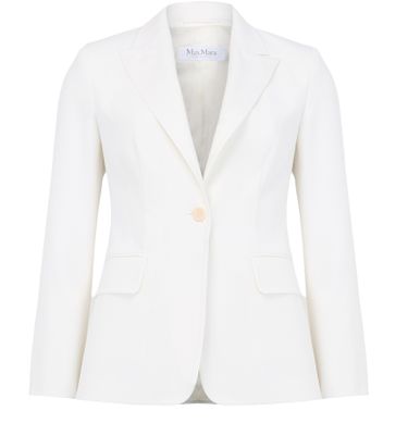Max Mara's Palchi one-button blazer showcases a refined single-breasted silhouette with a notched collar, perfect for sophisticated layering. Its long sleeves and elegant design are complemented by two front flap pockets, seamlessly blending style and functionality for the modern woman who values both fashion and practicality.