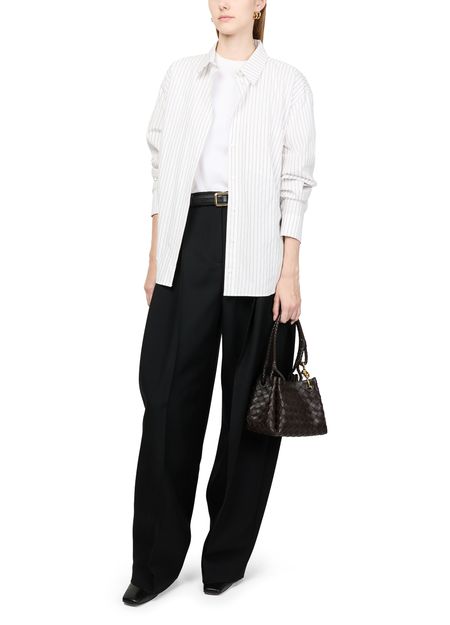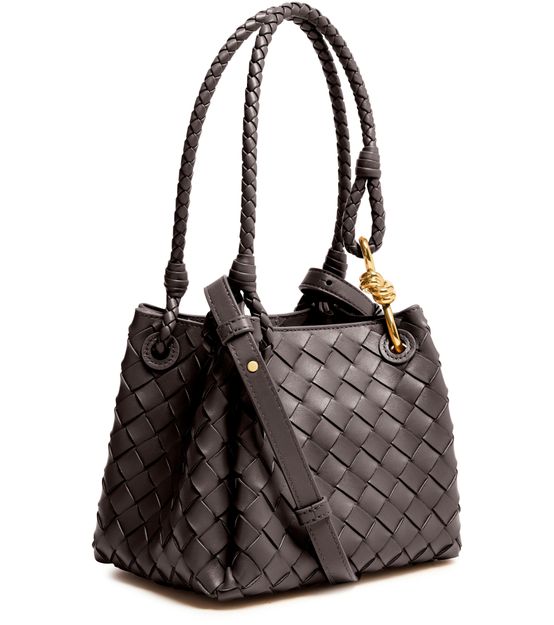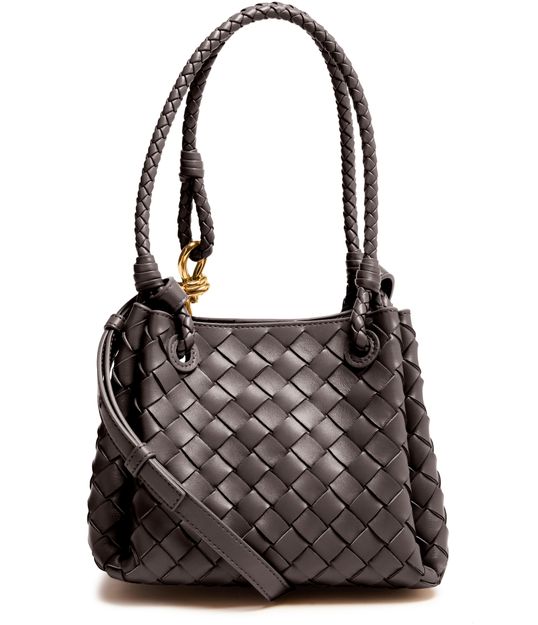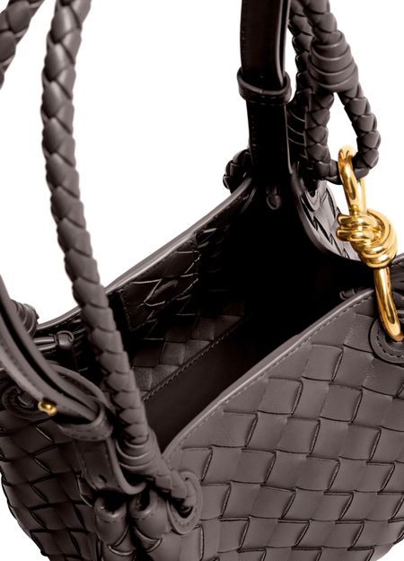 Reveal Bottega Veneta's Parachute small bag, a masterpiece of modern design. This shoulder bag showcases the iconic Intrecciato weaving technique, complemented by a wide, adjustable strap and double handles. Its large interior compartment and gold finish add a touch of elegance, making it a must-have for any fashion-forward wardrobe.