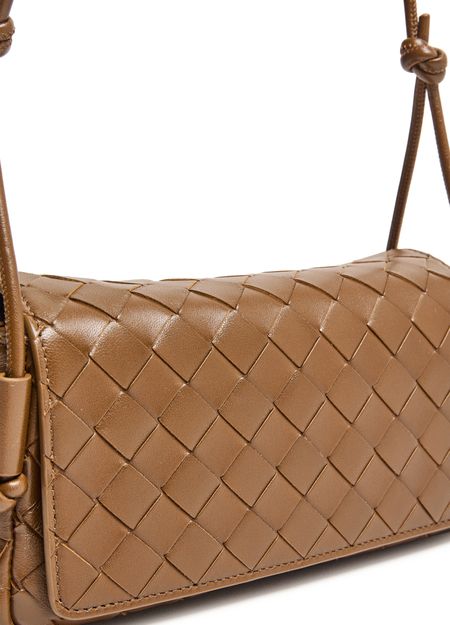• Description : Crossbody bag, intrecciato weaving technique, leather handle, thin strap, adjustable strap, zipper closure, magnetic closure, zippered interior pocket.