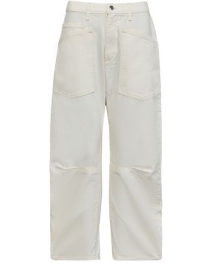 Reveal Nili Lotan's Shon jeans, featuring a buttoned and concealed zipper closure, belt loops, and visible stitching. These ankle-length, low-waisted jeans boast a loose fit in premium denim, perfect for a modern, relaxed style.