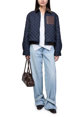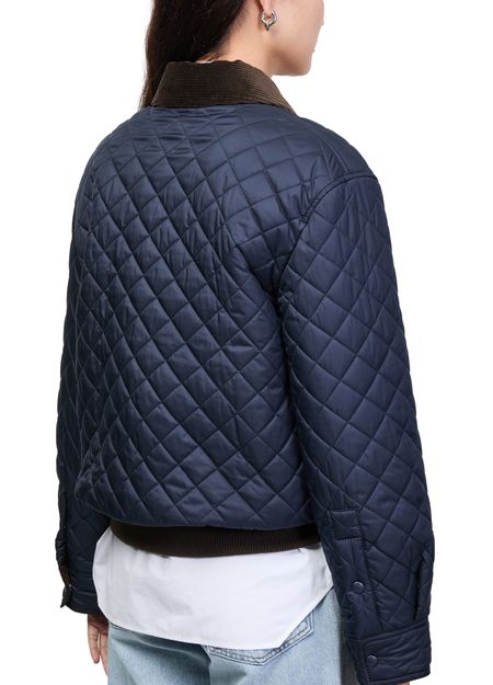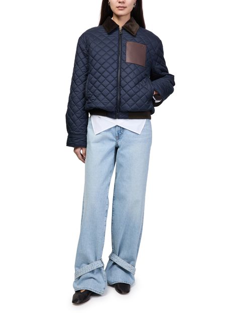 Reveal Loewe's short polyester puffer jacket, crafted with a padded texture and diamond pattern for a modern silhouette. The zipper closure, long sleeves, and engraved chest logo add refined touches, while side and breast pockets offer practical appeal. Versatile for both casual and elevated looks.