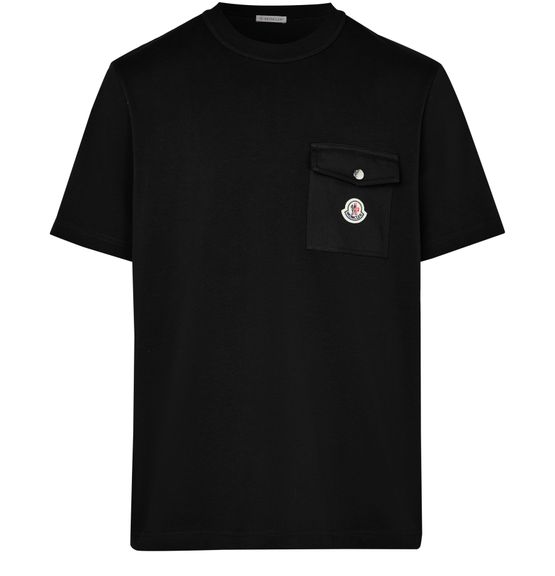 Embrace Moncler's short sleeved t-shirt, a perfect blend of style and comfort. This tee features a distinctive chest logo, visible stitching, and flap pockets, adding functionality to its short-sleeved, crew-neck design. Ideal for those who appreciate elegant, well-crafted t-shirts.