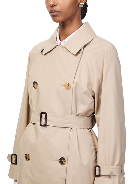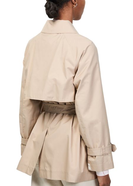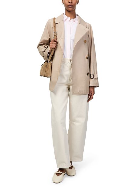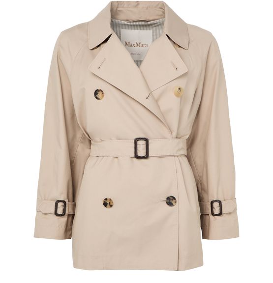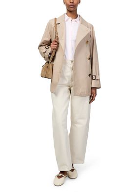 Reveal Max Mara's belted short trench coat, a modern silhouette defined by its cropped length and double-breasted closure. Side and flap pockets add functional flair, while the classic collar and long sleeves ensure timeless appeal. This versatile piece transitions effortlessly from day to night, elevating any wardrobe.