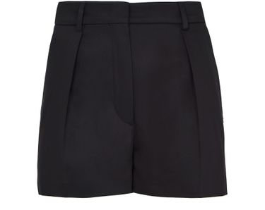 • Description : back pocket, welt pockets, concealed closure, visible stitching, high-waisted fit, belt loops, back darts, short length, pleats on the front, belted waist.