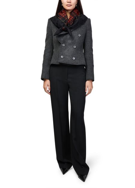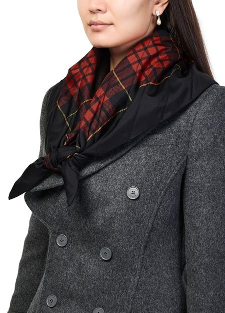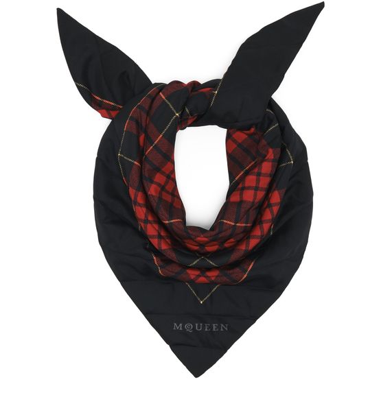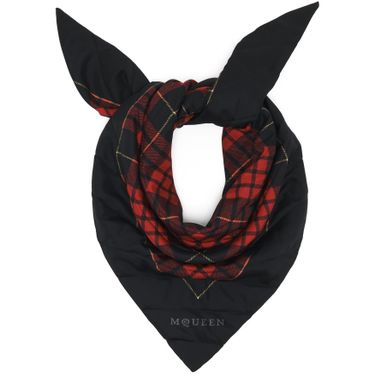 Reveal Alexander McQueen's silk scarf, featuring a refined checked pattern and a distinctive logo print along the edge. This accessory brings a modern twist to any ensemble, offering a sophisticated touch that seamlessly blends timeless design with contemporary flair.