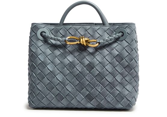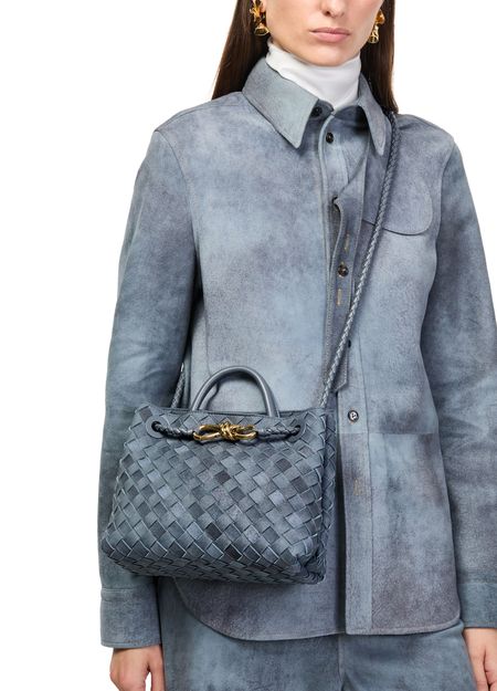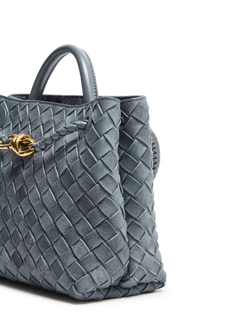 Reveal Bottega Veneta's Small Andiamo bag, crafted in sumptuous suede with the iconic Intrecciato weaving technique. The single handle and gold finish add refined sophistication, while a zippered interior pocket and leather lining ensure both elegance and practicality for your essentials.