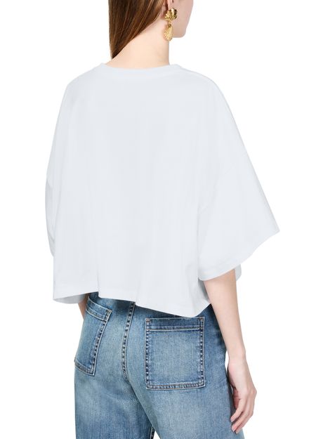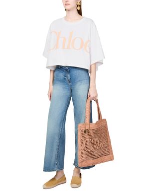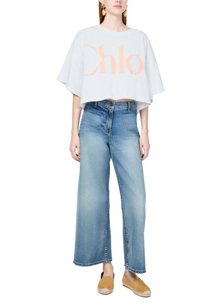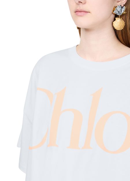 Chloé's T-shirt showcases a classic crew neck and three-quarter sleeves, blending comfort with style. Its regular length and visible stitching highlight the craftsmanship, while the printed logo on the front adds a modern touch. Perfect for casual outings, this t-shirt effortlessly elevates any wardrobe with its chic simplicity.