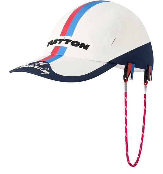 A sporty style inspired by the Louis Vuitton 37th America’s Cup, this Technical Gaston Cap is crafted from a light technical fabric and adorned with Vuitton and America’s Cup signatures in tricolor tones. It has small holes on the sides to hold sunglasses, while a cord with Gaston clips secures the cap to clothing in squally weather.