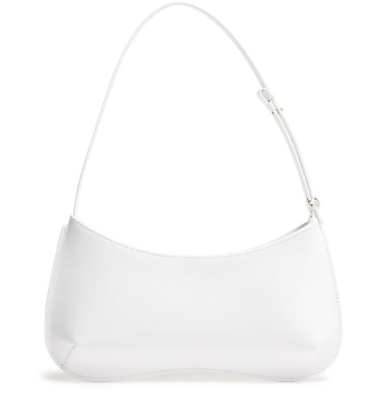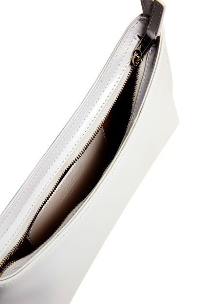 • Description : Shoulder bag, single handle, leather handle, smooth leather, visible topstitching, one interior patch pocket, embossed logo.