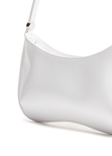 Unveil Jacquemus's Bisou, a sleek beaded shoulder bag featuring a single handle crafted from glazed calf-leather with a refined silver finish.