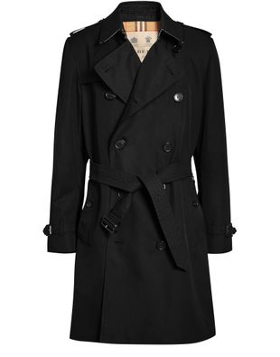 Our classic-fit trench coat updated with modern proportions. The archive-inspired style is woven in our signature gabardine with a neat silhouette and squared shoulders. Layer over tailoring and pop the collar to reveal a flash of Vintage check.
