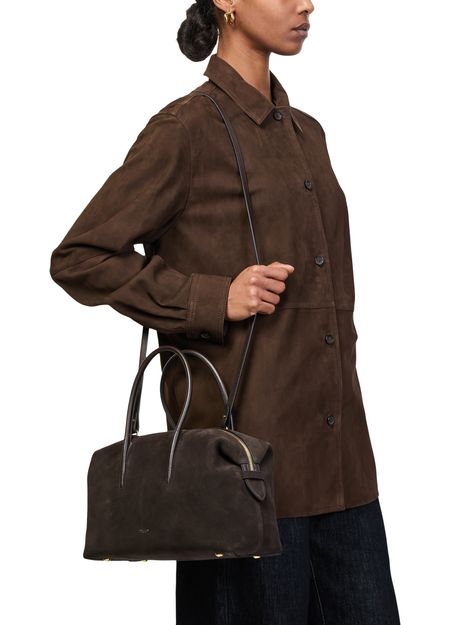 Reveal Demellier's The Midi Stockholm handbag, crafted from sumptuous suede with double handles for versatile carrying. Visible stitching and a front logo add refined detail, while the secure zipper closure ensures your essentials stay safe. This shoulder bag blends modern sophistication with everyday practicality.