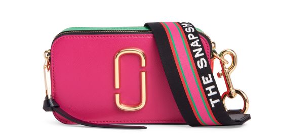 The "Snapshot" cross-body bag blends unusual, elegant materials with chic metallic details that embody Marc Jacobs' signature style.