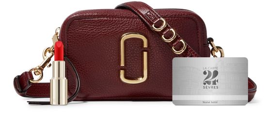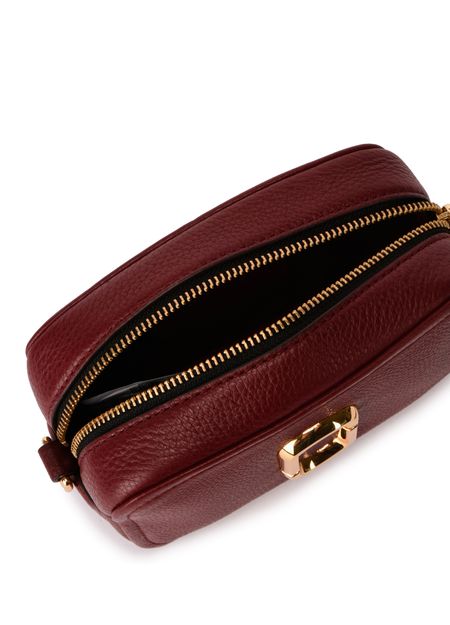 • Description : Mini bag, slender, adjustable, detachable strap, grained leather, metal logo on the front, worn on the shoulder or crossbody, zipper fastening, gold finishes.