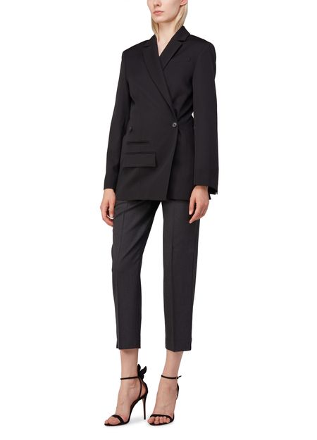 La Veste Tibau is a deconstructed jacket with a slim fitting design. It features a notched tailored collar, long sleeves, and piped pockets, including a flap pocket for added style. The buttoned and crossover fastening adds a unique touch to this versatile and sophisticated jacket.
