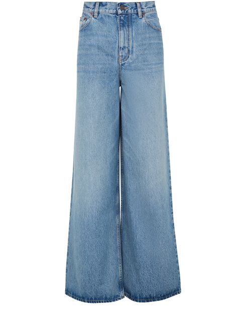 Indulge in Chloé's wide cut denim pants, showcasing a five-pocket style and ankle length. The piece features a buttoned and concealed zipper closure, complemented by contrast stitching and a back leather logo. With belt loops and a low-waisted fit, these pants redefine casual elegance.