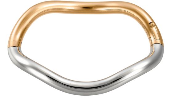 Charlotte Chesnais's Wave bracelet showcases an exquisite bangle with a two-tone finish, expertly crafted from a combination of precious metals. Its asymmetric design adds a modern flair, while the built-in clasp at the back ensures a secure fit. With a non-adjustable length, it promises a stunning, effortless elegance.