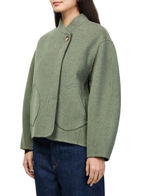 Reveal Soeur's windsor wool coat, a short, long-sleeved piece with a high neck and button fastening. Patch pockets add a practical touch, while the refined silhouette ensures effortless style. Perfect for elevating both casual and polished looks, this coat seamlessly adapts to any occasion.