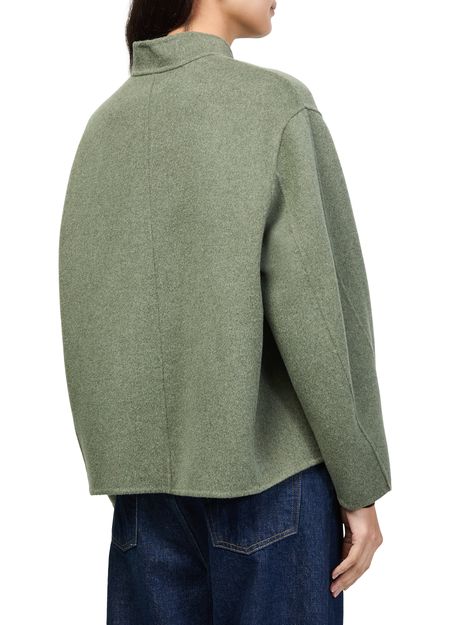 • Description : Short, high neck, long-sleeved, patch pockets, button fastening.