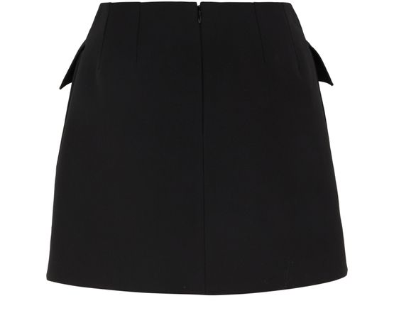 • Description : concealed back zipper closure, visible stitching, back darts, flap pockets, two front pockets, mini, a-line skirt.