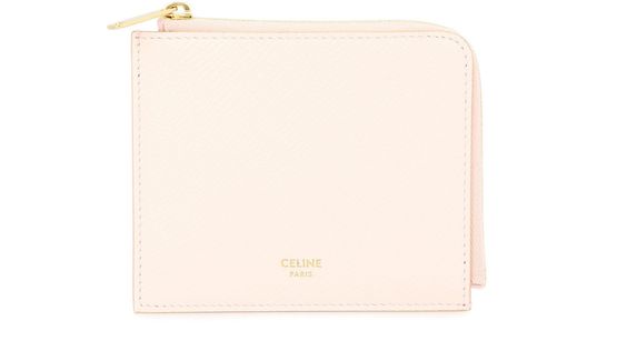 This elegant and very practical zippered clutch bag with a detachable card-holder has a single-color design with visible stitching. It is decorated with CELINE's signature.