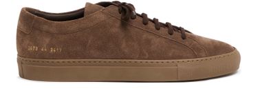 Common Projects's Achilles tonal suede sneakers showcase a refined silhouette with visible stitching and a round toe. The luxurious suede wraps your feet in comfort, while the logo-printed insole adds a touch of sophistication. Perfect for both casual outings and elevated looks, these closed sneakers are a must-have for any wardrobe.