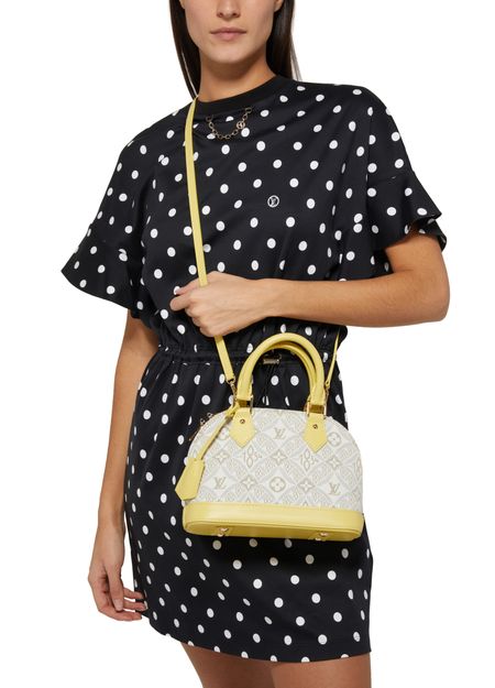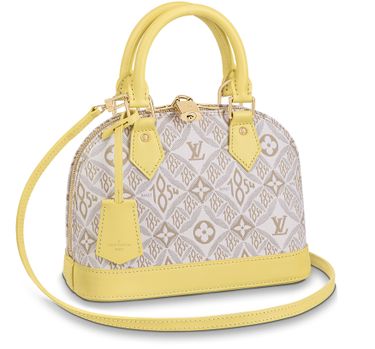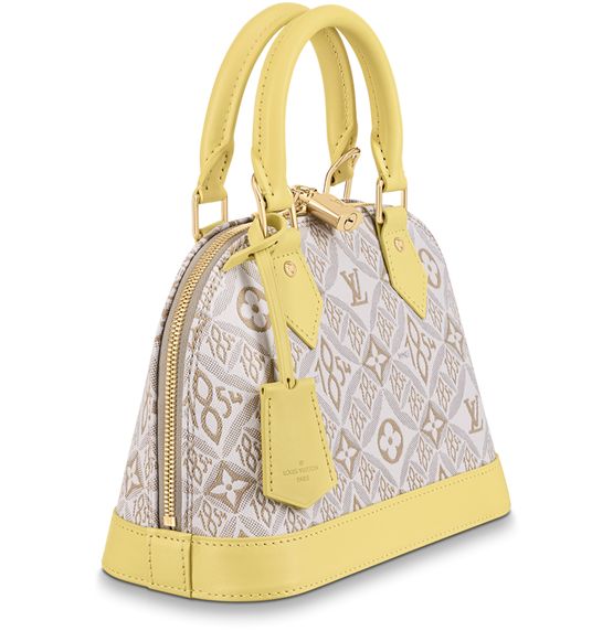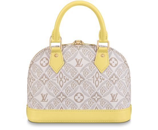 The Alma BB handbag is made from Since 1854 Jacquard textile, with a woven motif of Monogram Flowers, LV Initials and 1854s. This vintage-inspired pattern is complemented by gold-color hardware and cowhide-leather trim in a lively Ecru Yellow. Stylishly compact, this iconic bag is the perfect size to transport daily essentials.