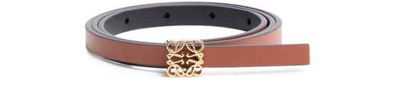 Unveil Loewe's Anagram cube reversible belt in smooth calfskin. With an adjustable clasp and gold-tone hardware, this belt exudes elegance. The logo buckle adds a distinctive touch, while the smooth leather ensures premium quality. Versatile for both casual and formal outfits, it's a true wardrobe staple.