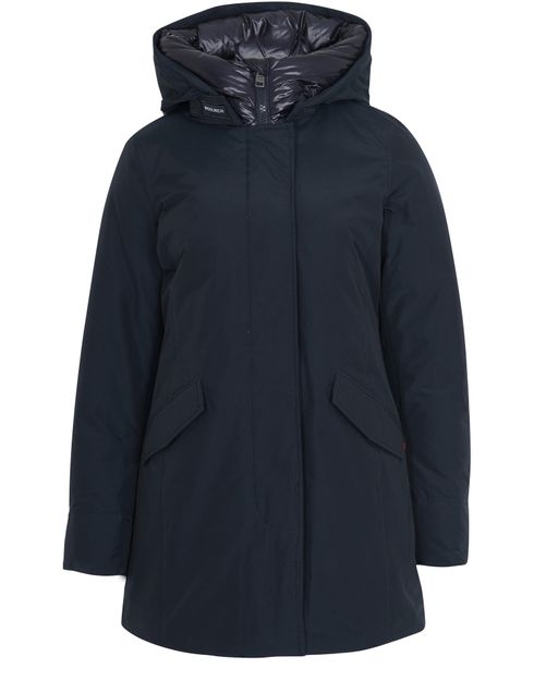 Description : Windbreaker parka, large hood, two front pockets, long sleeves, concealed zip fastening, warm material, straight, wide cut.