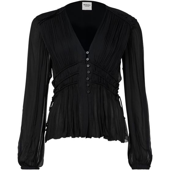 Etoile Isabel Marant's Axeline long-sleeved top showcases a stylish v-neck and a front buttoned closure, blending sophistication with ease. Its regular length and visible stitching add a touch of elegance, making it a versatile choice for any occasion. Effortlessly chic, this blouse elevates everyday wear to new heights.
