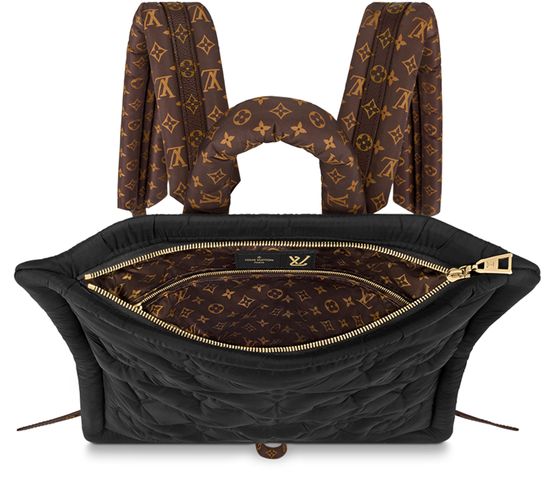 Part of the LV Pillow capsule collection, this sporty New Backpack is fashioned from Econyl, a new material that comes from 100% recycled nylon. Embroidered with the Monogram pattern, it has a soft padded feel. This backpack incarnates the House’s EcoDesign initiative to use sustainable, recycled, reused materials.
