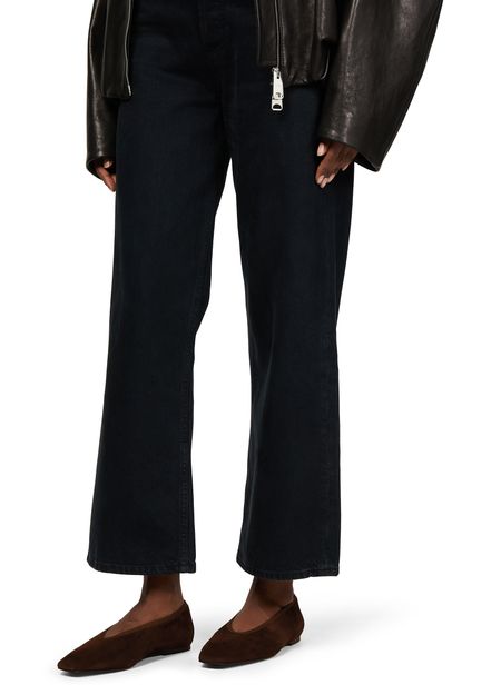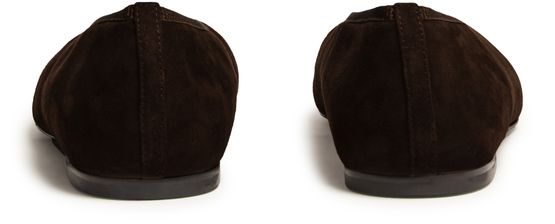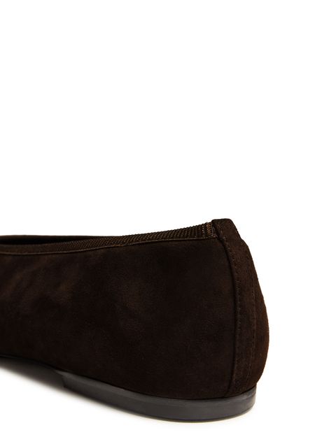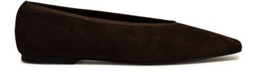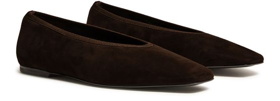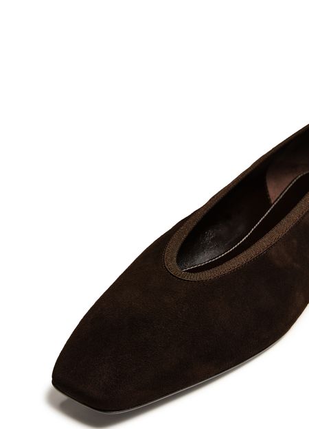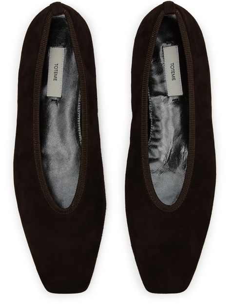 Reveal Toteme's ballet pumps, crafted in luxurious suede with a chic square toe and closed design. These low-heeled flats feature a logo-printed insole and visible stitching, offering both style and comfort. The pull-on design ensures ease of wear, making them a sophisticated addition to any wardrobe.