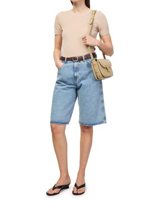Reveal Soeur's crossbody bag, crafted from smooth leather with a refined gold finish. The adjustable thin strap and flap closure offer both style and practicality, while visible stitching and studded details add a modern edge. This piece seamlessly blends sophistication with everyday versatility.